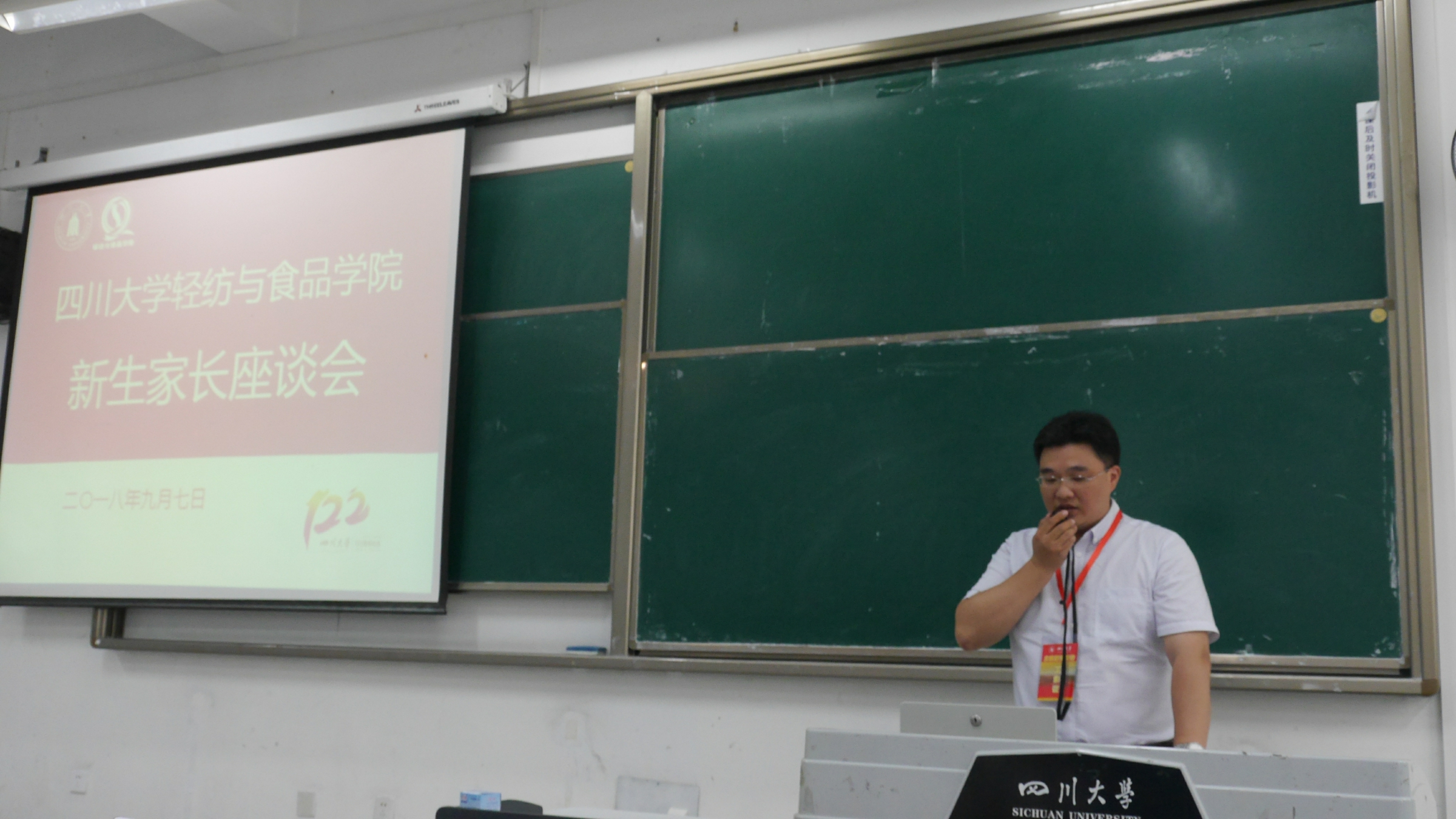 随后,由轻纺与食品学院何有节院长发言,何院长从学校的发展历程、管理体系、科研平台、师资队伍、专业设置、以及取得的学术成果等各个方面为各位家长及来宾做了详细介绍。同时,何院长为新生家长们讲述了关于四川大学学校的基本情况,以及学院的基本院情等内容,更是细心地讲述了家长们关心的诸多问题,这让新生家长们打消了很多疑虑,对孩子的未来充满了信心与希望。之后,bw必威西汉姆联官网副院长彭必雨教授为各位家长来宾做了关于bw必威西汉姆联官网学生培养体系模式的介绍,以及希望新生们来到大学之后应尽早适应、做好目标的定制。其后,冯国涛副书记从大学的特点、大学学习的特点、学生管理的特点等方面向家长们进行了讲解,希望能够与学校建构起“学生+家长+学校”的学生管理联动机制,携手同行,助力学生成长成才。
