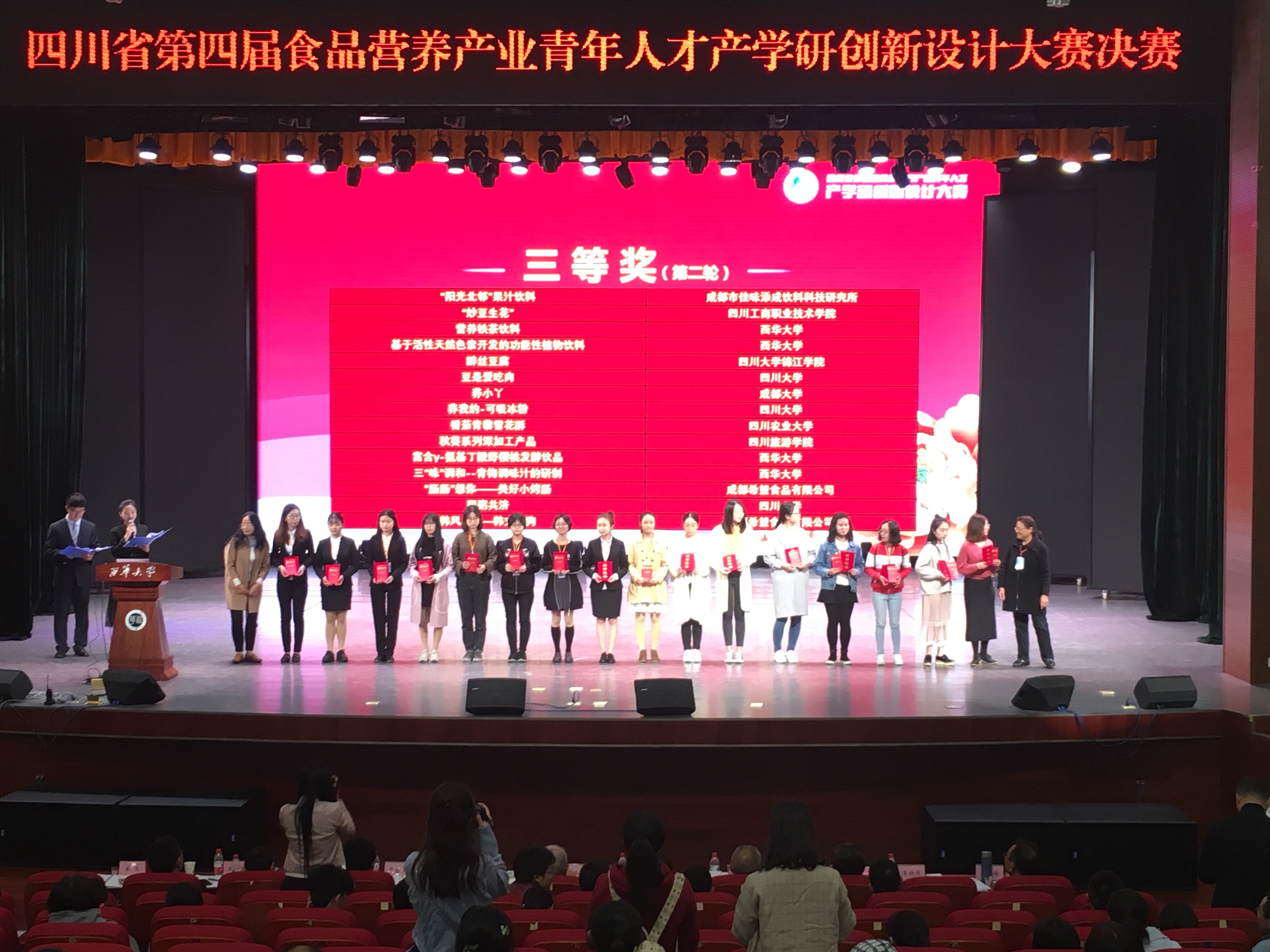 为激发青年人才对食品新产品创意、研究、开发的热情,促进食品与营养相关领域的创新人才成长,由四川省食品科学技术学会、四川省营养学会主办;中国科学技术协会、四川省科学技术协会指导;四川大学、西华大学承办的2018“四川省第四届食品营养产业青年人才产学研创新设计大赛”于2018年10月13日至14日在西华大学顺利举办,圆满落幕。本次大赛也被列入2018“大众创业,万众创新”全国双创周四川预热项目。