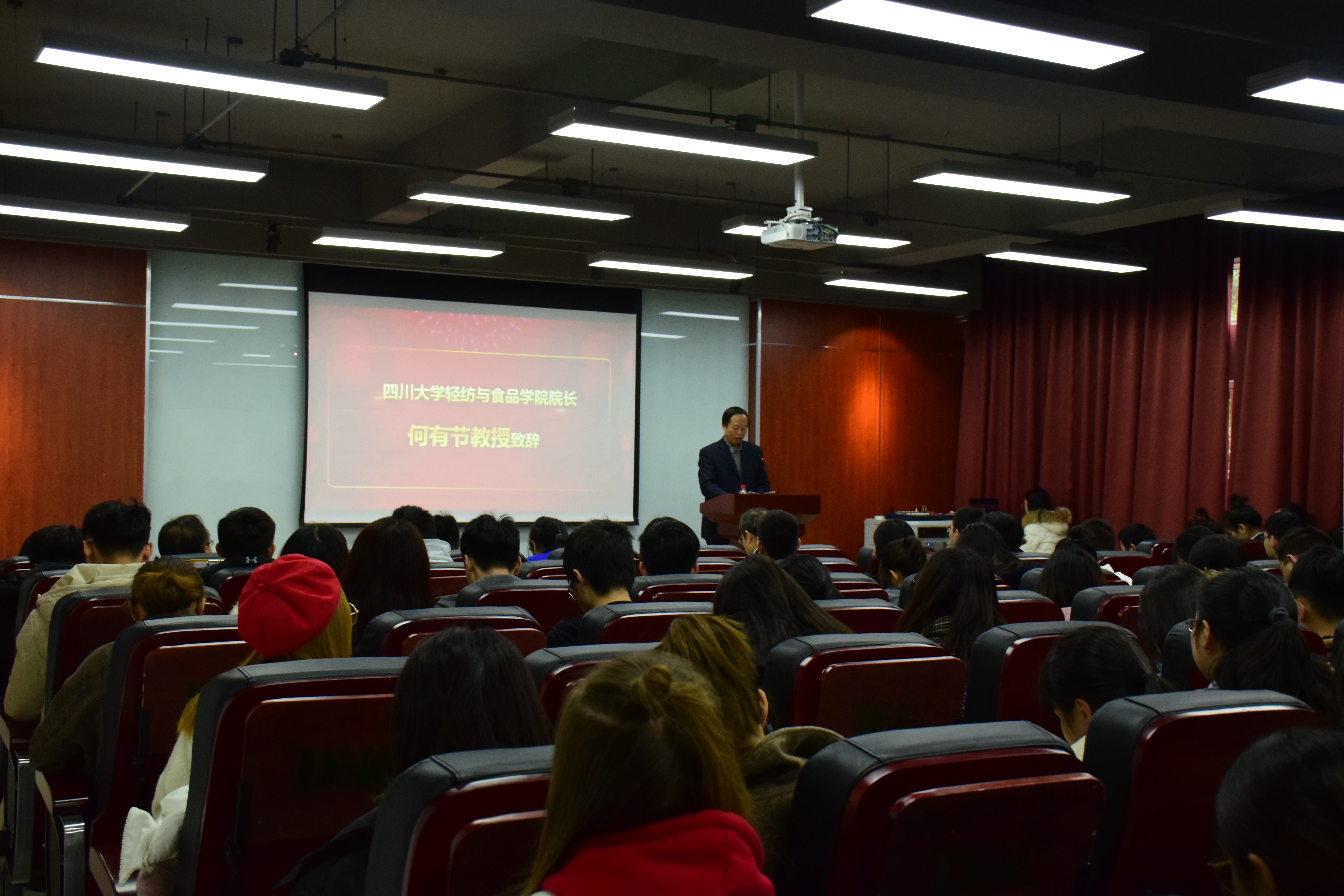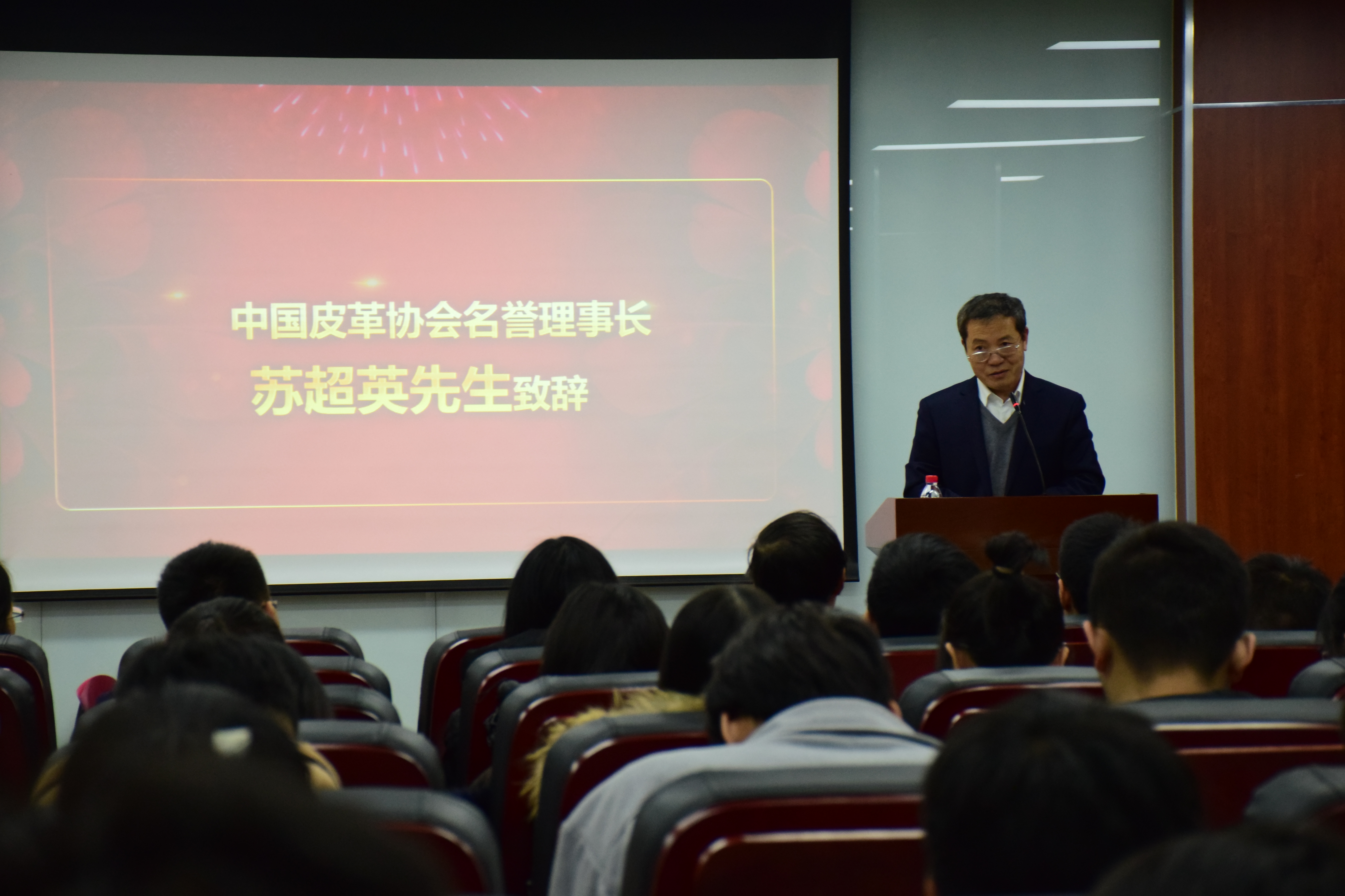 下午14:30,颁奖典礼正式开始,本次颁奖典礼由2015级辅导员贺婷老师主持。在颁奖典礼正式开始前,以视频短片的方式回顾了近十年生物质与皮革工程系专业奖助学金的设置及颁奖情况,让全场嘉宾与同学们对行业、企业及校友长期以来对我校人才培养的支持与鼓励有了全面的认识与了解。随后,何有节院长首先致辞,何院长代表轻纺与食品学院及生物质与皮革工程系感谢设奖单位、个人及专程到成都参加颁奖典礼的各位嘉宾,感谢他们对bw必威西汉姆联官网教育改革的关心与支持,感谢他们对川大学子的支持与鼓励,也对获奖同学表达了衷心的祝贺。何院长向各位嘉宾与同学详细介绍了生物质与皮革工程系近年来的教育教学、学科特点以及与行业企业交流合作开展情况。同时,何院长也对同学们提出了几点期望:第一、希望同学们珍惜荣誉、再接再厉、百尺竿头、更进一步。继续发扬拼搏精神,从现在开始,戒骄戒躁、诚信创新、刻苦钻研,努力提高自身素养,保持良好的学习风气和学习热情,取得更好的成绩,以回报支持和关心我们的行业主管部门、国内外企业,回报社会各界的厚爱与关怀。第二、希望同学们学会学习、锻炼能力,做好服务社会的准备。第三、希望同学们热爱所学专业,注重自己综合能力的培养。让每个同学成为既掌握扎实的专业知识,又有较高综合能力的复合型人才,以适应社会发展需要。第四、发奋成才、立报国志,感恩党和政府,感恩人民和社会。同学们要常怀感恩之情,永存奉献之心,学会善待他人,回报社会。同时,设奖单位代表中国皮革协会名誉理事长苏超英先生致辞。苏理事长回顾了中国皮革协会奖学金设立的历史,欣慰的看到一代又一代皮革学子在热心人才培养的行业企业和协会资助和鼓励下学有所成、学有所用,在行业内大有所为,众多科技成果受到国际社会的关注与认可,成为行业发展的中坚力量。因此,苏理事长也对同学们提出殷切希望:希望大家夯实基础、勤奋学习、广收博览、勤于思考;希望大家坚定信念、怀抱理想、明确目标、修德励能;希望大家脚踏实地、细微着手、步伐稳健、善于实践;更希望大家能够肩负起未来社会、行业、家庭赋予同学们的重任。