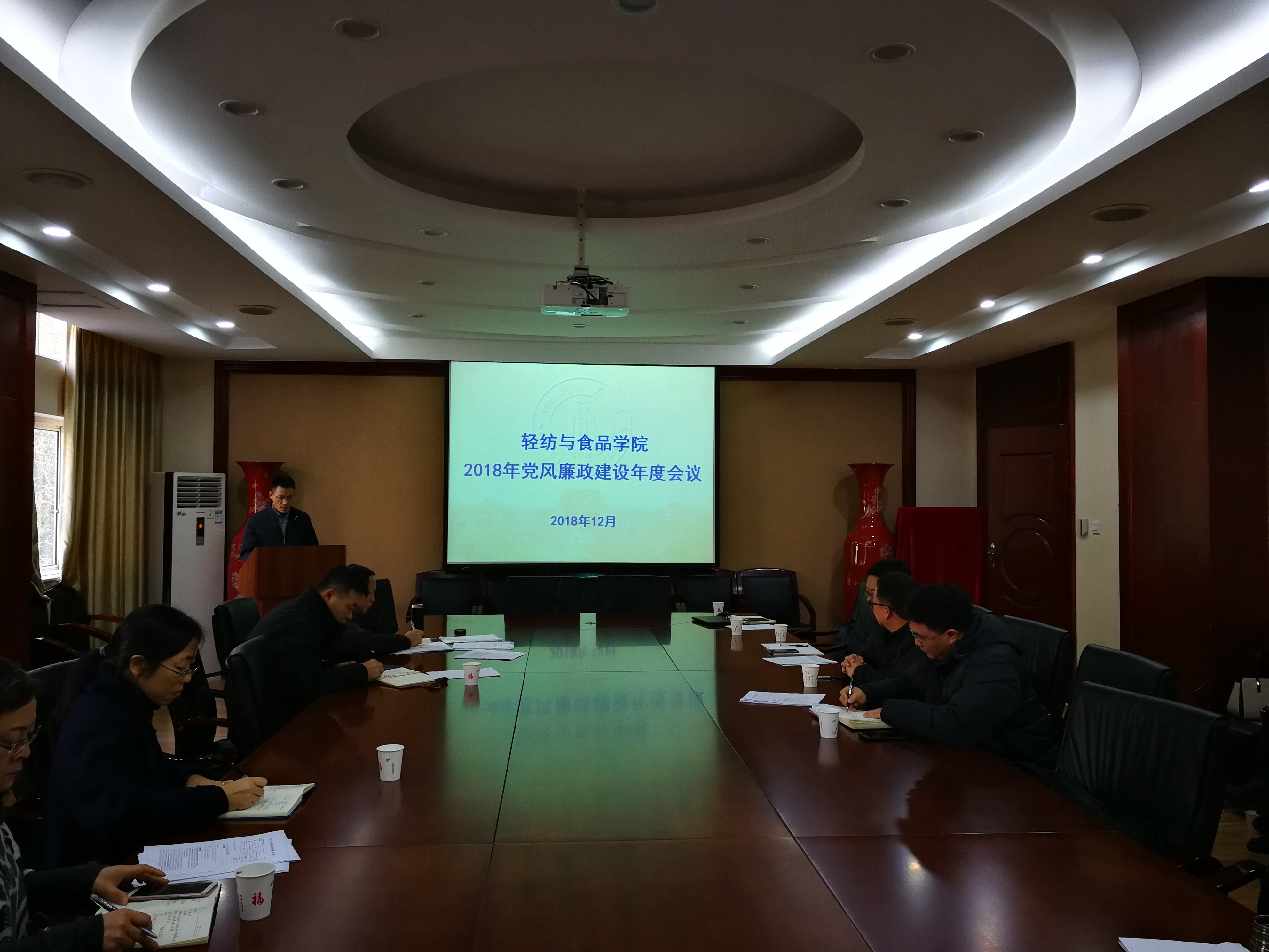 学院党委书记刘晓虎副教授首先介绍了党风廉政建设年度会议的背景及工作要求。纪委书记冯国涛老师代表学院纪委全面梳理、总结了2018学院年党风廉政建设方面的工作举措、工作成效以及存在的不足。尤其是学院班子在2018年工作中,进一步完善制度建设、规范办事流程、细化工作分工、强化责任落实等方面作了积极有效的推动工作,取得了明显的成效。根据学校《2018 年全面从严治党工作要点》、《关于开展 2018 年党风廉政教育宣传月活动的通知》,学院以“我的初心,我的使命,我的一流”为主题,制定实施了《轻纺与食品学院关于开展2018年党风廉政教育宣传月活动的通知》。学院结合专题学习、警示教育、意识形态、从严治党等方面开展工作,并与学院班子成员、党支部书记、系主任、科级干部签订《四川大学轻纺与食品学院2018年度全面从严治党责任书》。同时,学院纪委积极配合上级部门认真作好信访案件的全面调查、及时回复,努力营造风清气正的学院氛围。