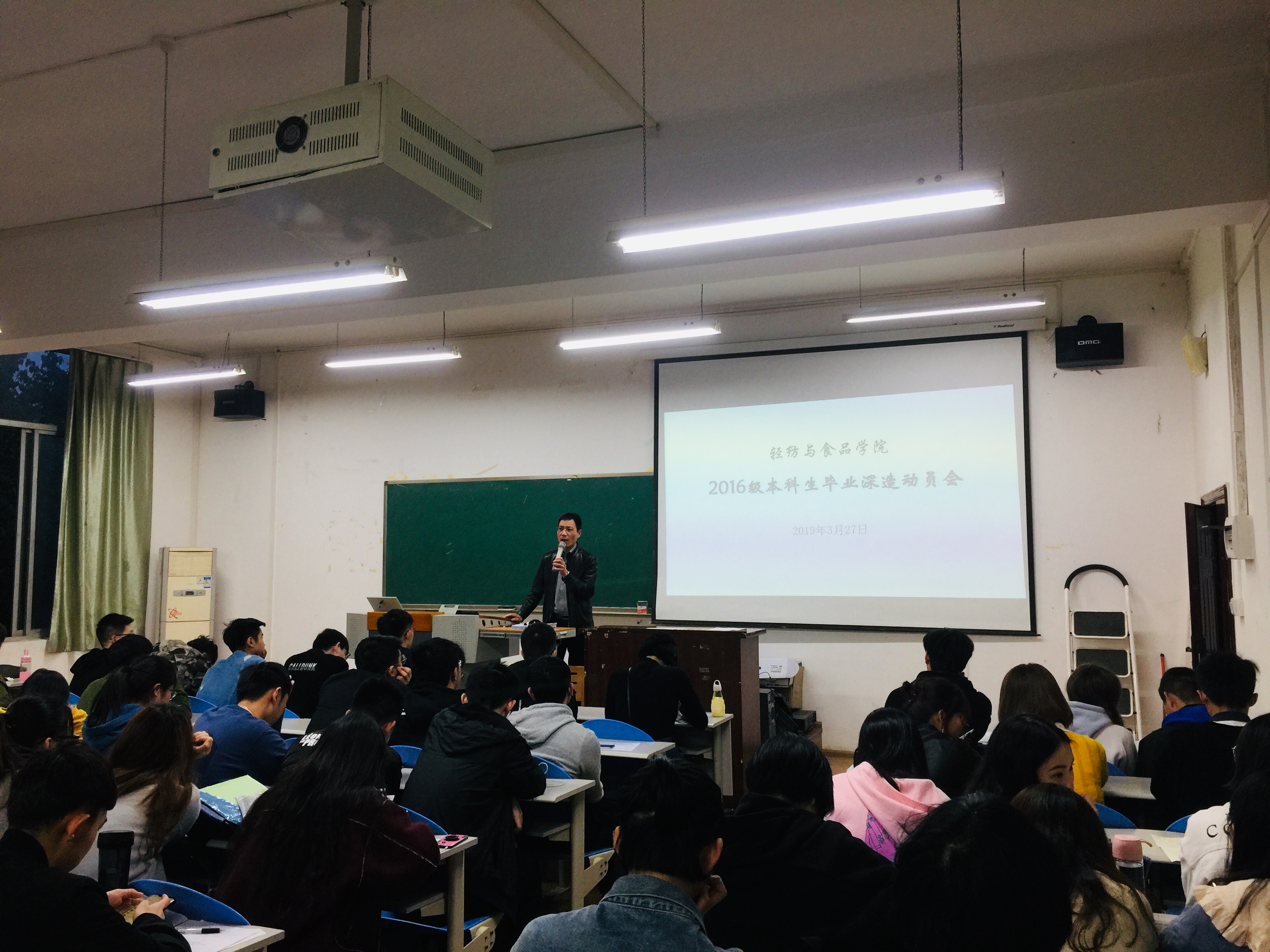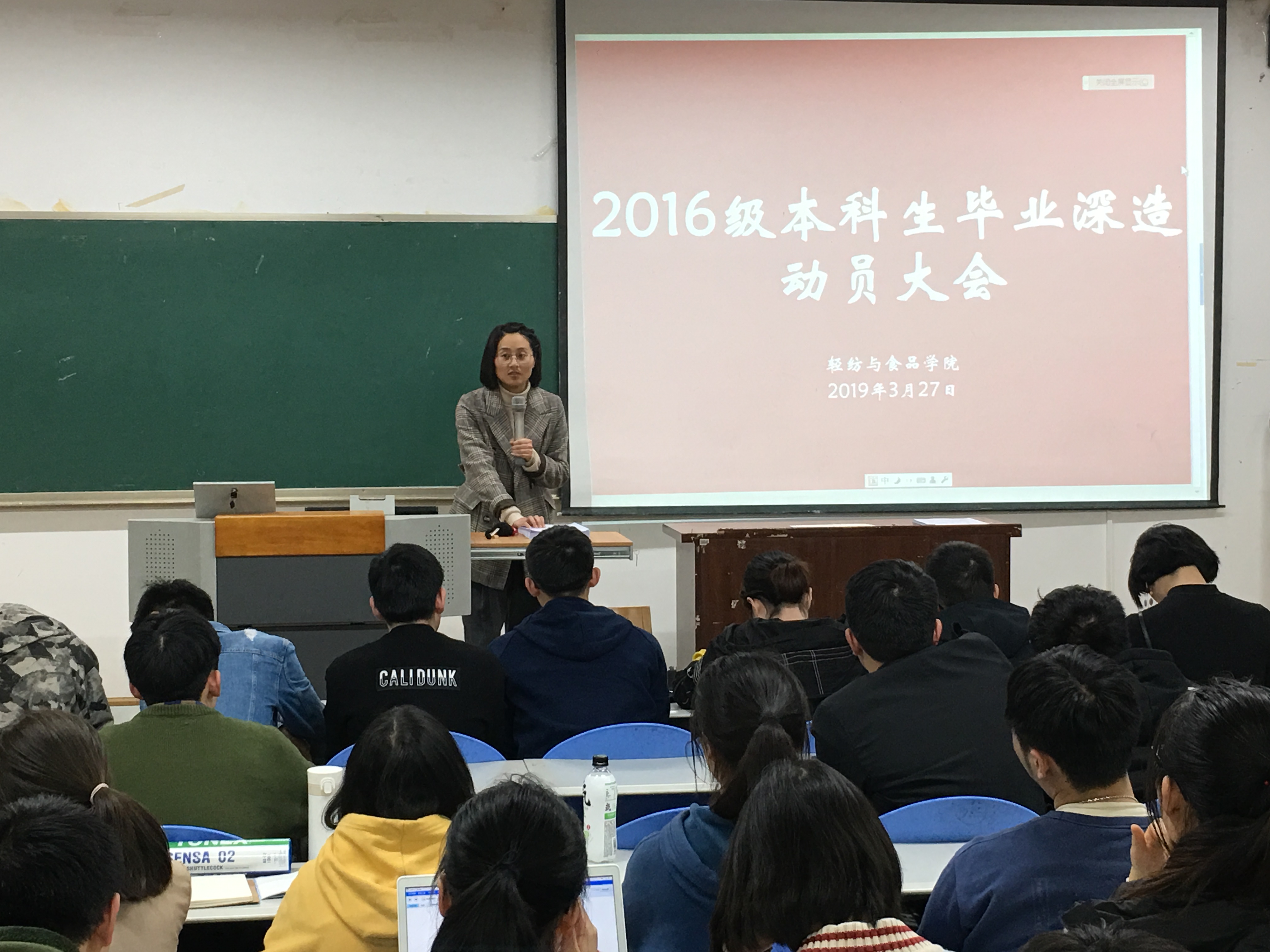 为提高学院本科生深造率,动员学院2016级学生作好深造计划,并为学院下一步加强深造精准指导提供基础,bw必威西汉姆联官网于2019年3月27日晚19时在纺工附楼205教室举行了2016级本科生深造动员大会。本次深造动员大会由轻纺与食品学院党委副书记冯国涛老师主讲,2016级本科生辅导员王舒灏老师以及2016级全体学生到场参加了动员大会。
