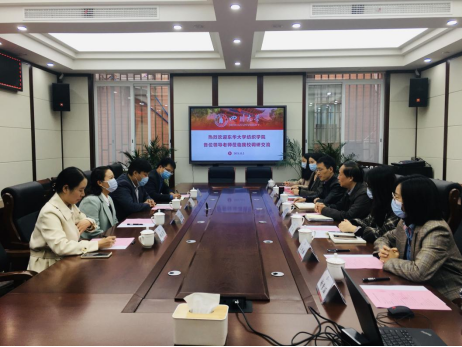 冯国涛副书记向陈书记一行人员介绍了学院学生工作整体情况。同时,陈书记也围绕东华大学纺织学院学生规模、学生工作建设等方面展开介绍。随后,双方老师重点就创新人才培养方式方法、学生党建工作品牌打造、学生学风建设、辅导员及班主任队伍建设等方面进行广泛而深入交流。