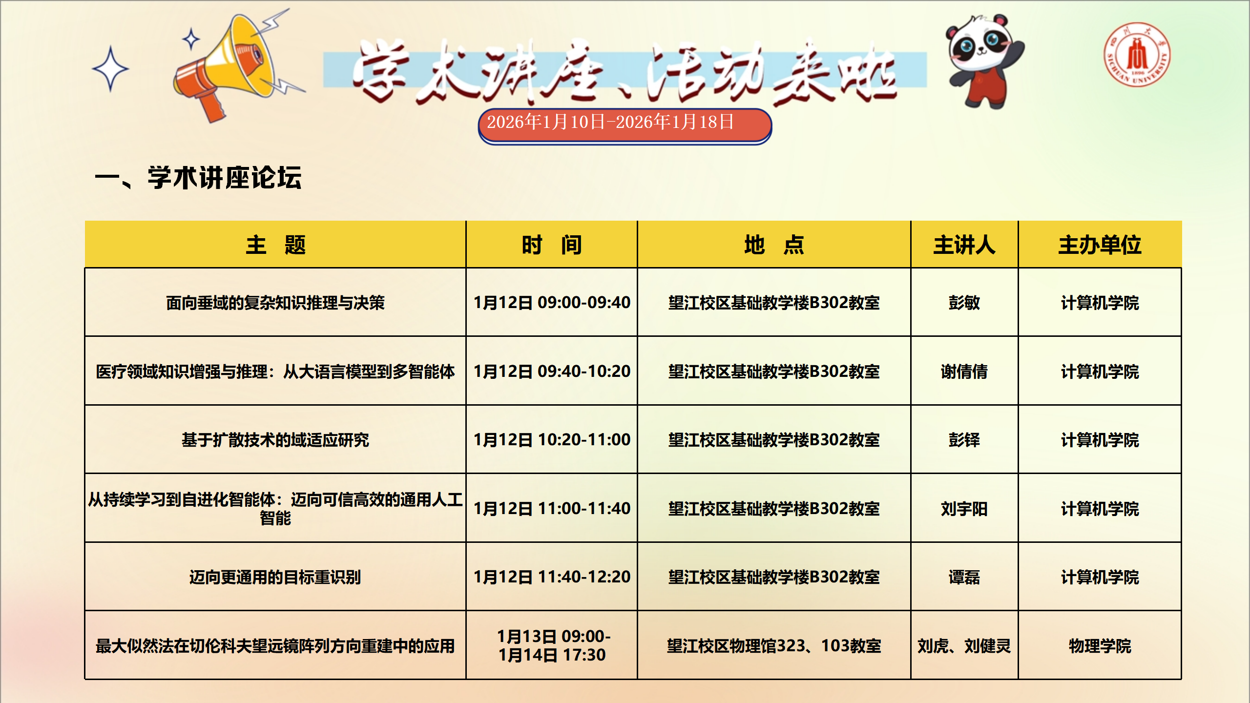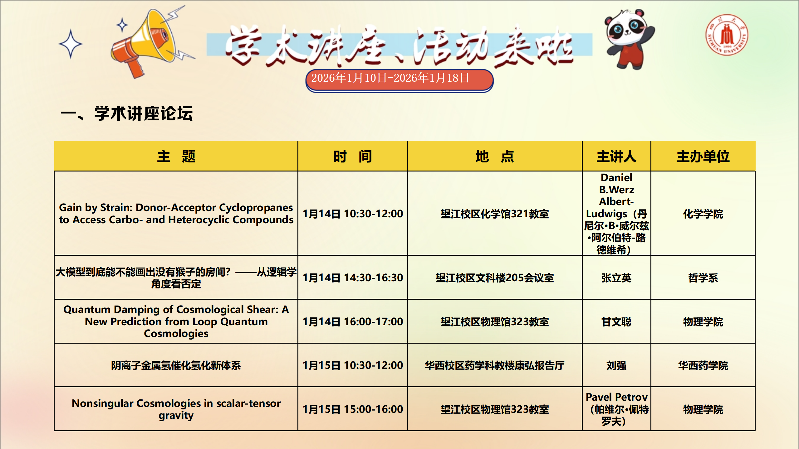 学术讲座预告(2026年1月10日-2026年1月18日)