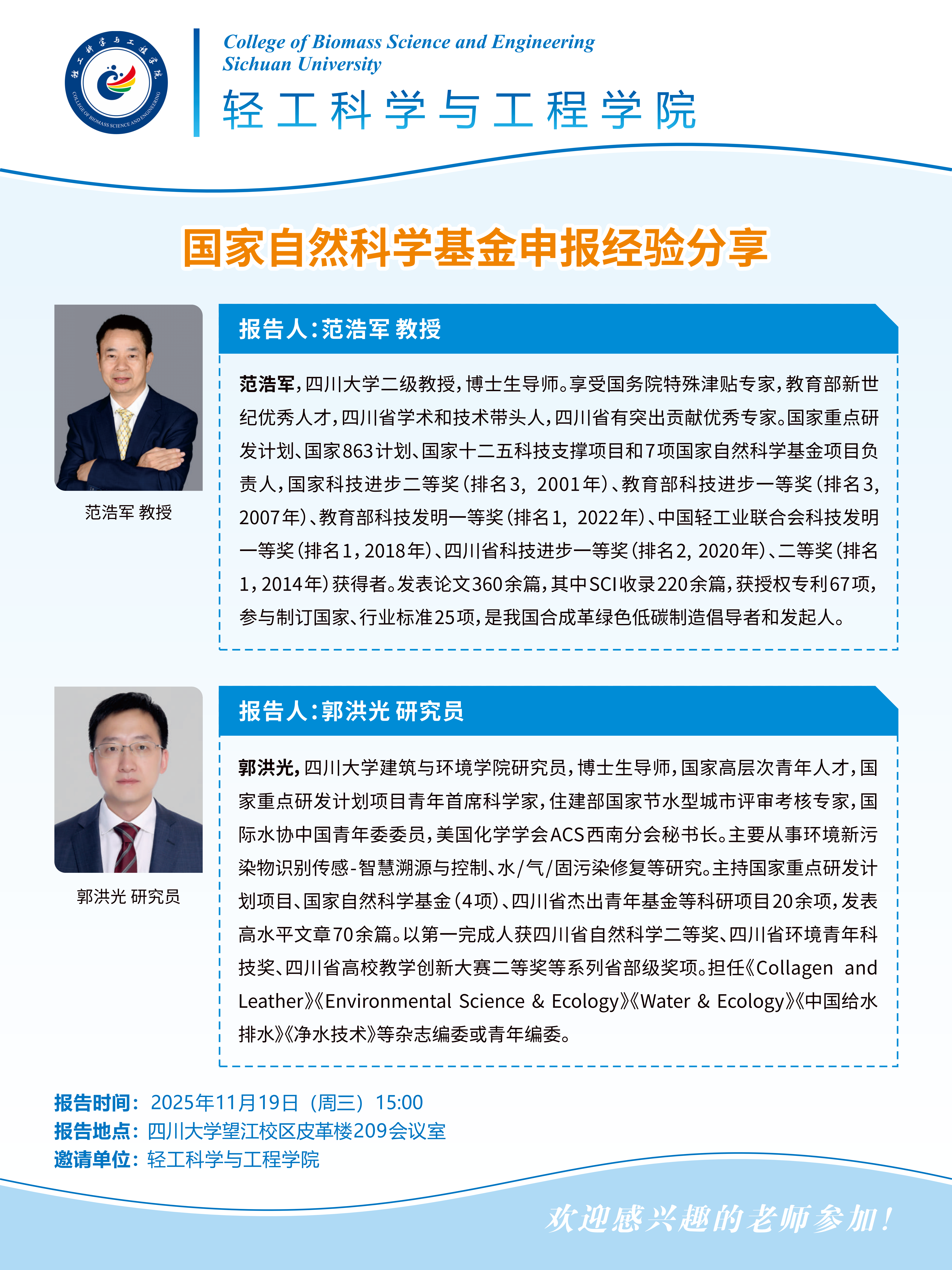 前沿论坛:范浩军教授、郭洪光研究员 国家自然科学基金申报经验分享