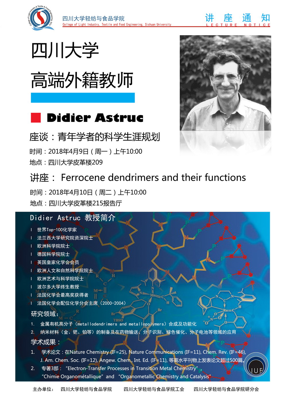 讲座通知-青年学者的科学生涯规划 & Ferrocene dendrimers and their functions