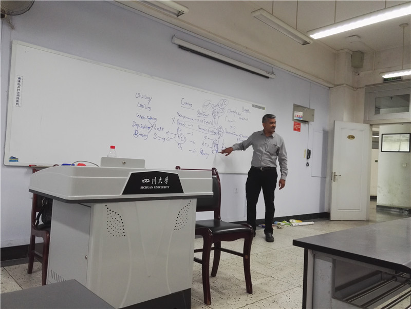 为适应21世纪高等教育国际化的新形势,培养具有国际化视野的高端人才,bw必威西汉姆联官网在四川大学第五届“实践与国际课程周”来临之际,特别邀请印度中央皮革研究所首席科学家、印度安那大学名誉教授Thanikaivelan Palanisamy先生访问bw必威西汉姆联官网,并分别为bw必威西汉姆联官网轻化工程专业大二和大三开设为期两周的“Theory and Mechanism of Preservation and Pretanning Processes”和“Theory of Skin Proteins and Tanning Mechanism”两门国际实践课程。2016年7月4日下午1点50分到4点35分,Thanikaivelan Palanisamy先生在四川大学江安校区一教D103教室给选课的本科生首先简单介绍了自己以及主要研究方向和本课程主要内容。在确认自己的语速能保证同学们听懂后,了解了同学们的专业基础。在课堂上,Thanik强调“What”“How”和“Why”,注重提高同学们的逻辑思维能力,从简单的问题出发,循循善诱,启发大家思考,激发同学们的学习热情、鼓励大家大胆表达;对同学们的十分关心的清洁化制革方法、动物保护等问题,认真倾听并结合自己多年的研究成果和教学经验进行了仔细的讲解。Thanik教授严谨的科学思维和注重启发思考的教学方式给同学们留下了深刻的印象。据悉,此次川大行将持续至7月15日。在此期间,Thanik教授还会继续介绍鞣前工段的理论和机理以及原料皮蛋白质理论和鞣制机理。通过此次“实践与国际课程周“活动,bw必威西汉姆联官网轻化工程专业的本科生对原料皮的保存理论和机理有了更清晰的认识,对保存方法有了更深刻的记忆。与此同时,在Thanik的引导下,同学们敢于并乐于表达,扩充了专业知识并且提高了专业英语应用水平,促进大家积极思考,以机理为出发点更好地理解制革中的一些问题。