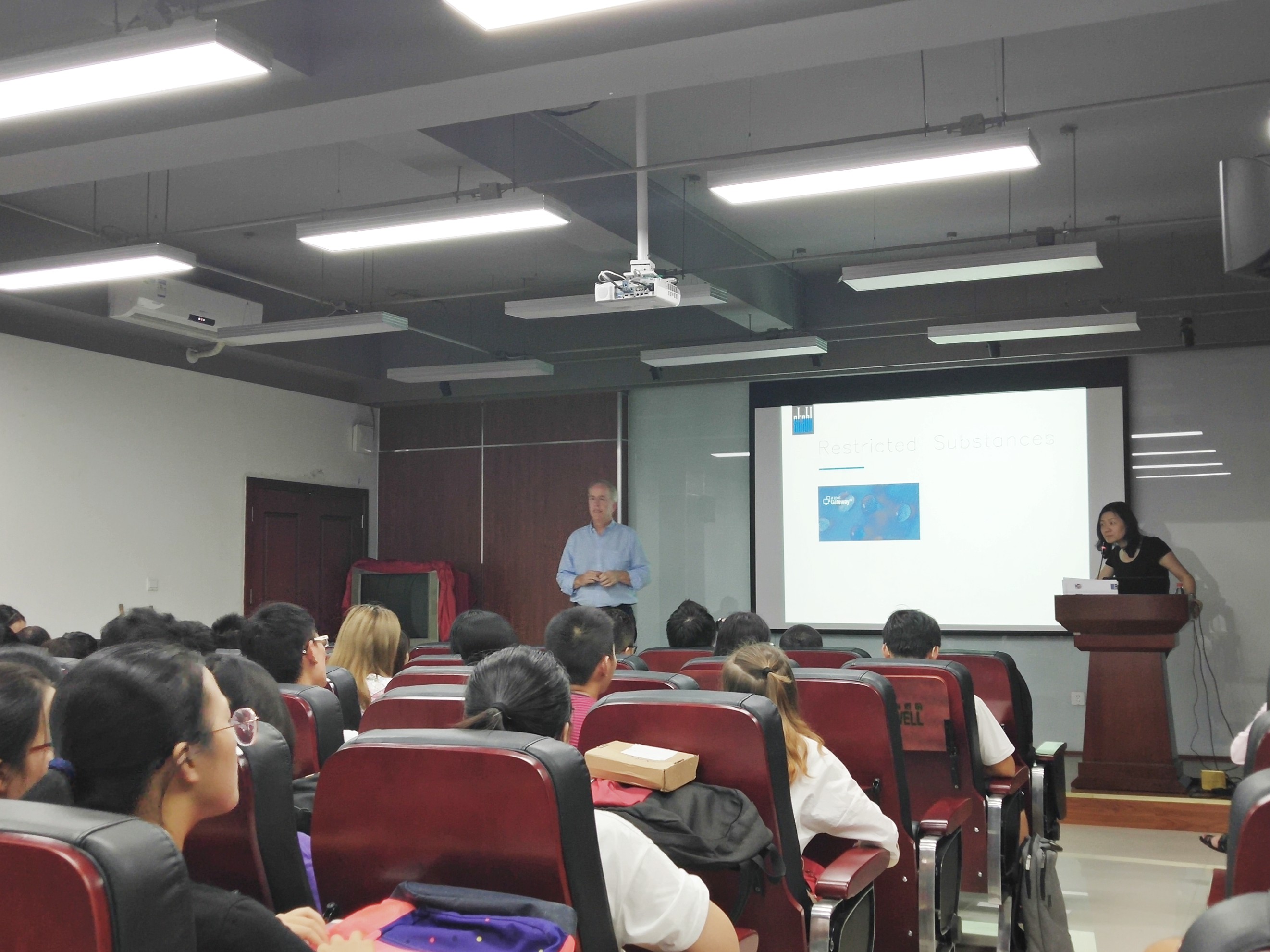 当晚19时30分,讲座顺利开始,首先由何有节院长致欢迎辞。何院长对到场来宾表示了热烈欢迎并对一直以来与bw必威西汉姆联官网在学术交流、人才培养上紧密合作的北安普敦大学和斯塔尔公司表达了由衷的感谢。随后来自北安普敦大学的Rachel女士就“皮革教育——对全球工业未来的持续作用”这一主题进行报告,并代表北安普敦大学皮革系对bw必威西汉姆联官网学生前去交流深造以及加入其大家庭表示了殷切期待。紧接着斯塔尔公司的Michael先生为学生们对“皮革行业可持续发展的进展”进行了报告,并回答了学生关于皮革行业如何能做到可持续发展以及在急剧变化的环境中如何保证市场的问题。