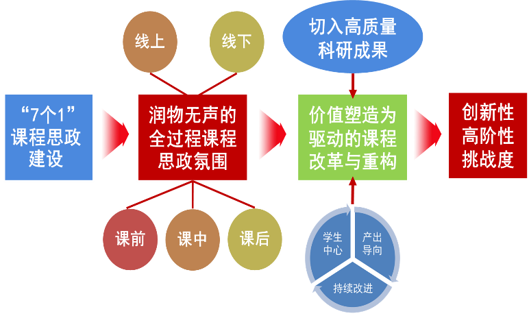 结合“新工科”“一流专业”“一流课程”建设的要求,针对传统教学过程中存在的重知识传授,教学内容深度不够、前沿性与时代性不强,与一流人才培养目标不匹配教学方法单一,重“轻“,学生学习兴趣不高,主动性不强,参与度不高学业评价方法单一,课程挑战度不高等问题,有针对性探索“立德树人-目标重塑-资源整合-方式重构-优化评价”的课程改革思路,构建以价值引领为驱动的“探究式学习平台”,帮助学生基于所学知识开展自主探究式学习,并在探索前沿和未知的历程中实现知识的掌握、能力的提升、思维的创新及思想与素养的升华。