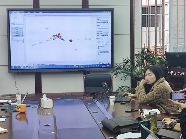 首先,主持人杨璐铭教授向参会师生介绍了特邀嘉宾及活动目的,文献可视化分析是快速锁定文献关键核心信息探明研究前沿及发展趋势灵活运用的信息搜索方法,可以使我们的教学和科研工作事半功倍。本次活动以文献可视化分析为主要脉络,介绍相关软件或网页工具进行分析的途径及方法。