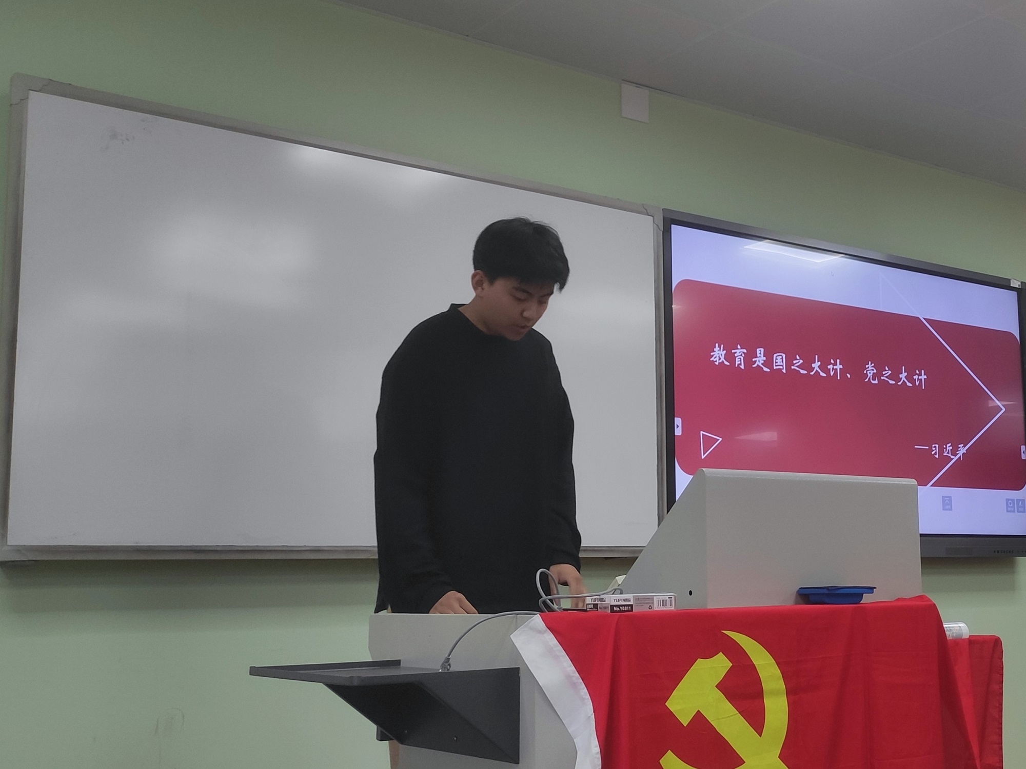 吕忱阳同志从高等教育的角度出发,全面介绍了习近平总书记对于教育、科技、人才的整体论述,尤其是在建设中国特色、世界一流大学的进程中,坚持立德树人根本任务,建立高水平人才培养体系的新理念新要求新任务。参会党员同学就如何成为一名德智体美劳全面发展的建设者和接班人开展了积极讨论。