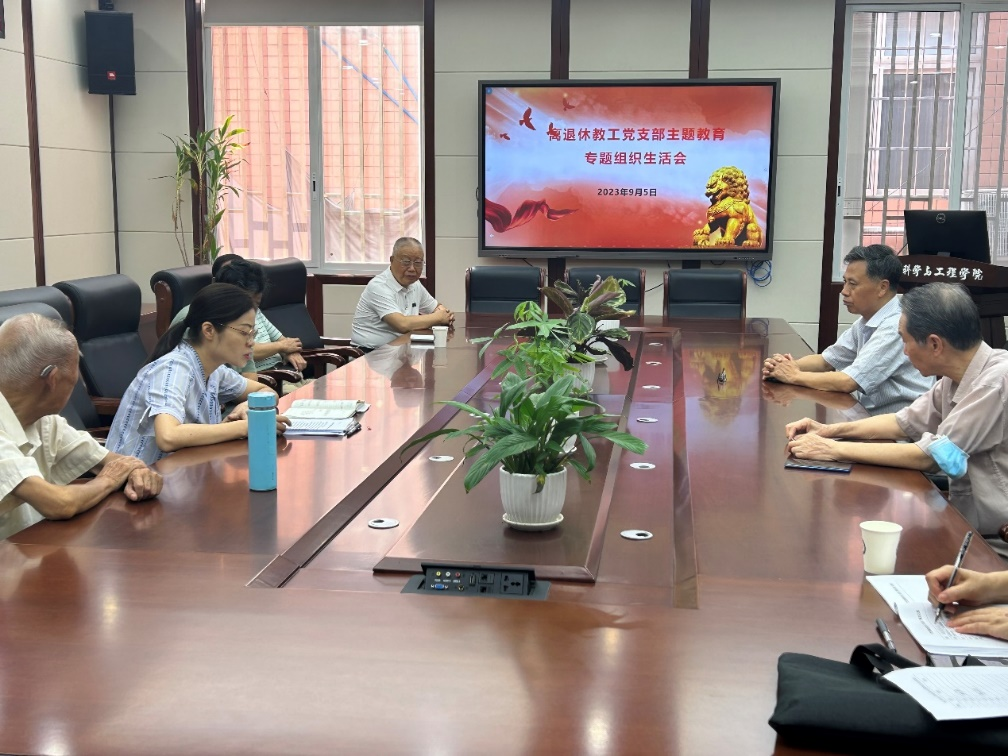 2023年9月5日下午,离退休教工党支部在纺工附楼205会议室召开学习贯彻习近平新时代中国特色社会主义思想主题教育专题组织生活会。会议由党支部书记李慧同志主持,学院党委书记李天富同志参加了本次会议。