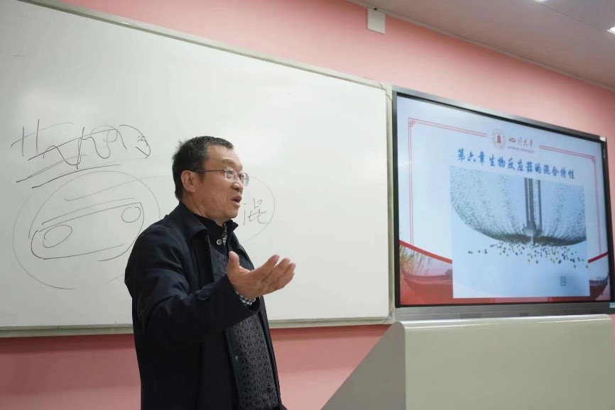 本次教研活动以“生物工程专业工程属性课程的教学实践与创新”为主题,聚焦基层教学组织青年教师教学能力培养与教学传帮带,以生工专业核心课《生物反应工程》的教学观摩为载体。活动中,生工专业创办人周荣清教授就“生物反应器的混合特性”这一章节做了精彩授课。周老师课程准备充分,授课生动和活泼,条理清晰,课堂中通过问答与学生进行深度互动和思维启迪,同时,周老师在授课中理论联系实际,灵活迁移在多年工程实践一线的工程案例进行较为抽象基本概念的讲解。《生物反应工程》课程组秦久福、王春华两位青年老师聆听了本次授课。本次活动前,周老师带领课程组两位年轻老师进行了学情分析以及相关教学计划研讨。