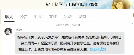 学院通过QQ群提醒教师做好上课准备