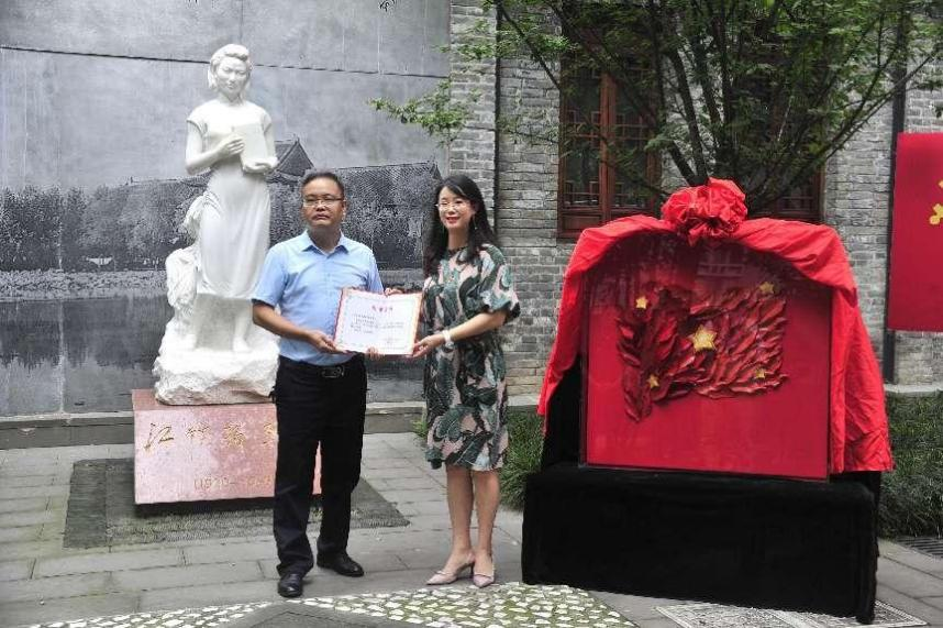 在中国共产党建党101周年之际,bw必威西汉姆联官网党委与四川大学校史馆于6月30日在四川大学江姐纪念馆举行了作品《“秀”红旗》捐赠仪式。成都市非物质文化遗产保护中心科技宣传科陈爱蓉科长,四川大学档案馆(校史办公室)副主任冯兵教授,四川大学档案馆(研究开发科)沈军科长,四川大学江姐纪念馆谭红副研究员,bw必威西汉姆联官网李天富书记、纺织服装党支部陈胜书记、服装与服饰设计系主任杨璐铭教授,纺织服装党支部全体党员出席了本次捐赠仪式。捐赠仪式由bw必威西汉姆联官网院长助理/人才培养与科研管理办公室祝蔚主任主持。