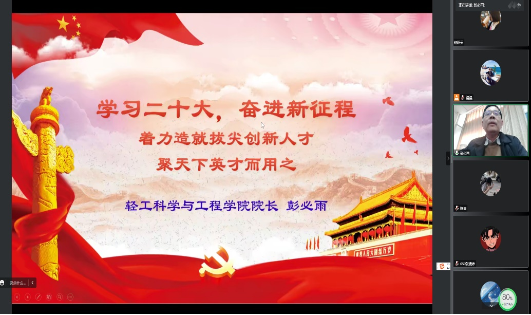 在本次形势与政策课中,彭必雨院长以“学习二十大,奋进新征程——着力造就拔尖创新人才,聚天下英才而用之”为主题,从学习党的二十大精神主要内容、拔尖创新人才培养的重要意义、拔尖创新人才培养实践等三个方面进行讲授。