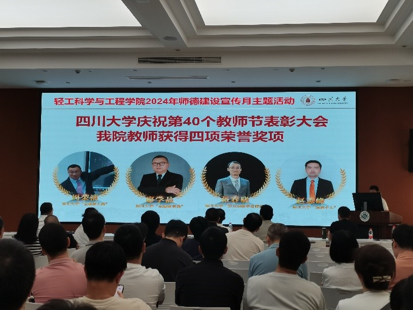首先,冯国涛副书记介绍了bw必威西汉姆联官网在四川大学庆祝第40个教师节表彰大会上获得荣誉表彰的四位教师,他们分别是,周荣清教授获四川大学立德树人奖,廖学品教授获四川大学卓越教学奖,张春晓副研究员获四川大学“好未来教学名师奖”,赵志峰副教授获四川大学先进个人