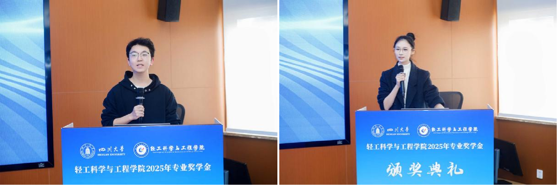 颁奖结束后,本科生代表许艺泷、研究生代表刘恒宇发言,他们表达了对设奖单位及学院的感谢,表示将以获奖为新起点,深耕专业、锤炼本领,投身行业创新实践,成长为行业栋梁。